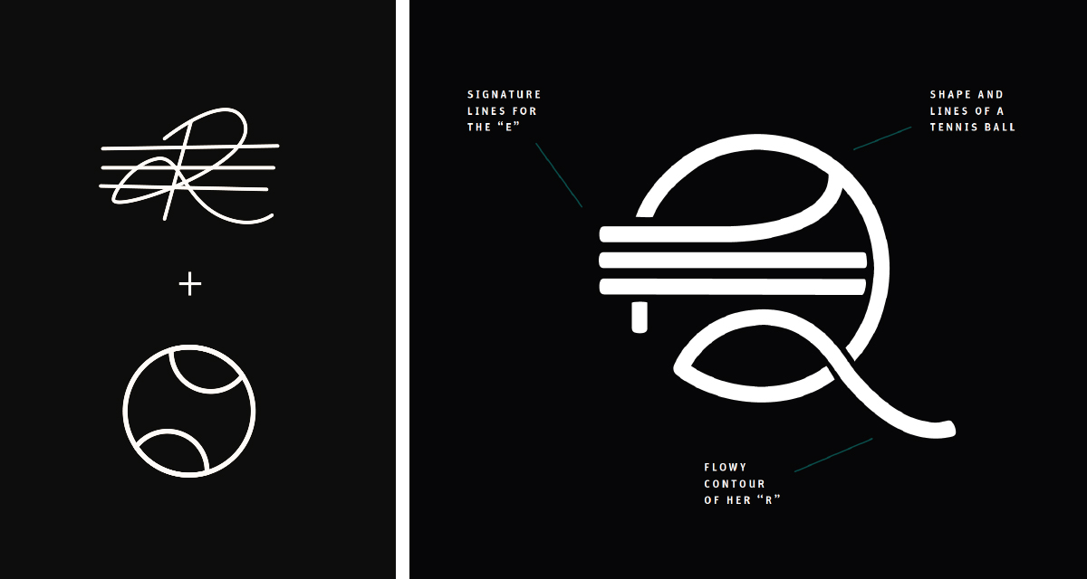 Inspired by sport monograms and icons for sport personalities through the times I created a symbol tied to her person as well as to the sport. A combination of her autograph and the famous graphic shape of the tennis ball created a symbol that’s playful, bubbly and easily recognizable.
