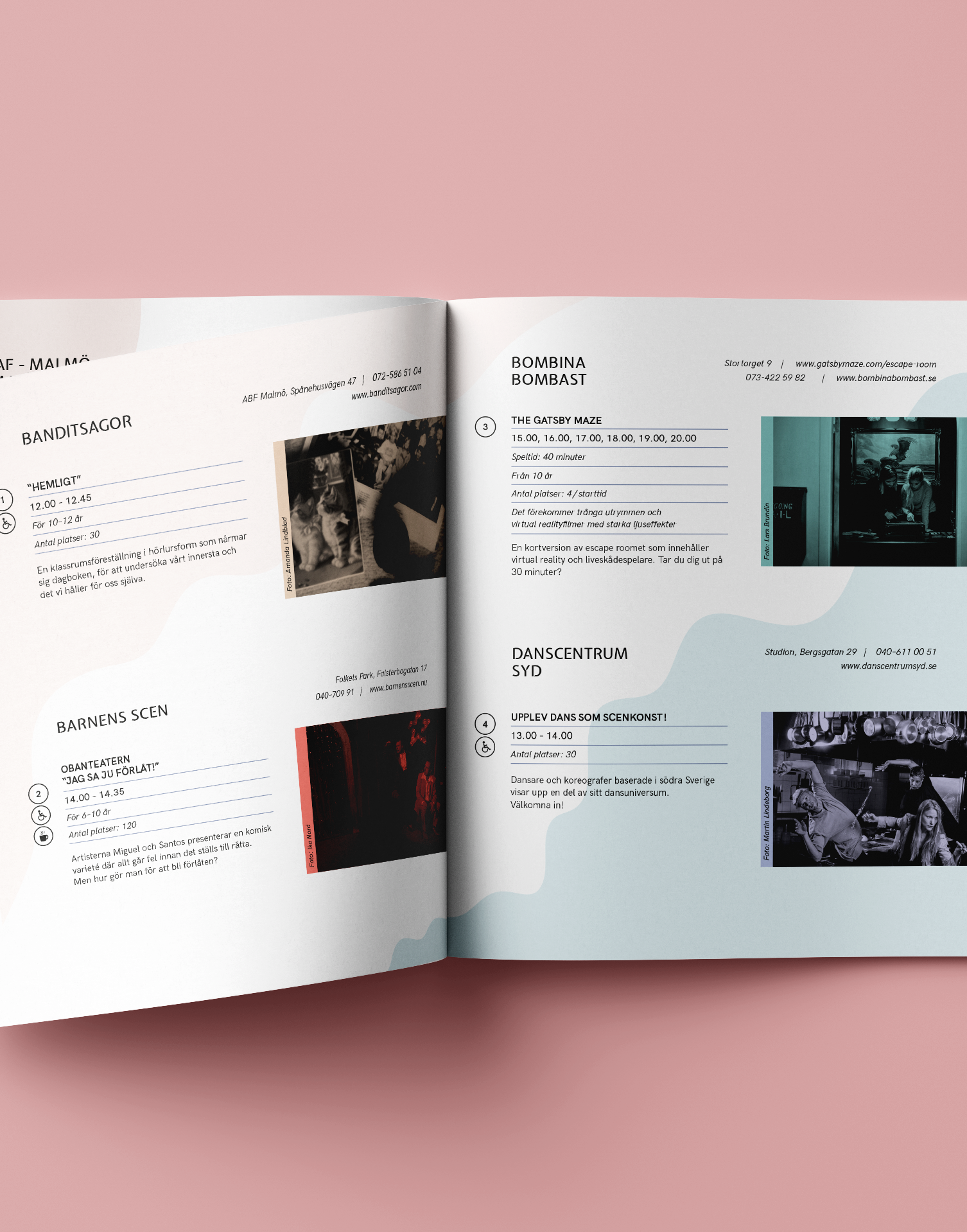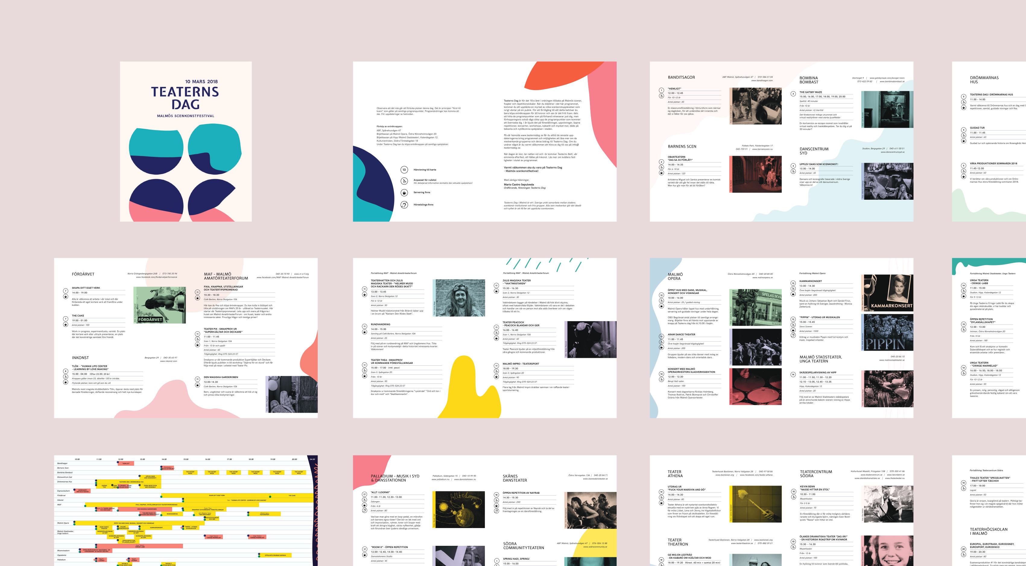 Design for Teaterns Dag (Theatre Day) 2016, 2017 and 2018. Teaterns Dag is an annual performing arts-event in Malmö filled with dance and theatre by non-profit artists and venues. Instead of buying a festival pass you buy a pin which gives you free admission to all of the show.